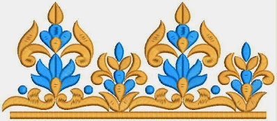Here is the Windstar machine embroidery Lace border design for Lehenga choli dresses. This one is silk fabric lace in two colors looking amazing. It's used on Neck or Blouse and Bridal wear dresses. This heavily Embroidered zardozi craft lace with Celtic knot designs. This lace is giving a classy effect in silk fabric with moti and stone handwork. Lace is in cyan and mustard color wool thread work is really gives it a fresh look.